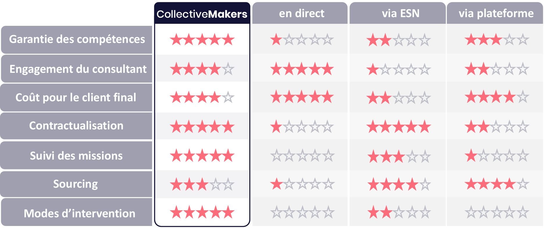 Quand nous sommes en mission nous pouvons solliciter l’avis et l’aide des autres membres – dans la limite de vos accords de confidentialité – et grâce à d’autres experts vous proposer de meilleures solutions.